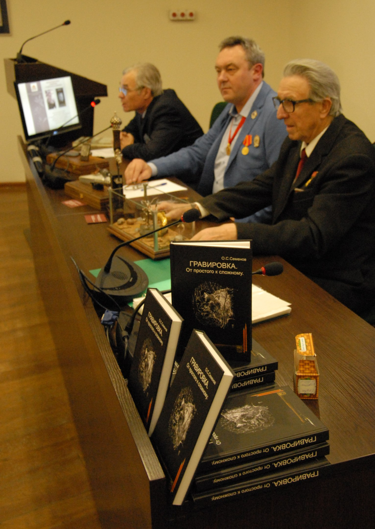 8 февраля музей оружия принимал мастеров-оружейников, тех, кто хранит и приумножает славные традиции Тулы оружейной. Поводом для встречи стал выход новой книги Олега Сергеевича Семёнова «Гравировка. От простого к сложному», в которой обобщен богатый опыт известного тульского художника-оружейника, гравера с многолетним стажем работы, виртуозно владеющего навыками художественного ремесла и техническими приемами обработки материалов. Искусство тульских оружейников давно стало синонимом непревзойденного мастерства, блестящего сочетания оригинальности и надежности конструкции, высокого технического качества с красотой художественного убранства. О.С. Семёнов - член Творческого союза художников России и Международной федерации художников, участник престижных оружейных и художественных выставок. В эпиграфе к учебнику автор пишет: «Только мастер, неуверенный в себе, испугается раскрыть перед другими те секреты мастерства, которыми владеет сам». Следуя этому принципу, Олег Сергеевич передает свой богатейший опыт художника-оружейника каждому, кто откроет книгу и возьмет в руки резец и штихель.
