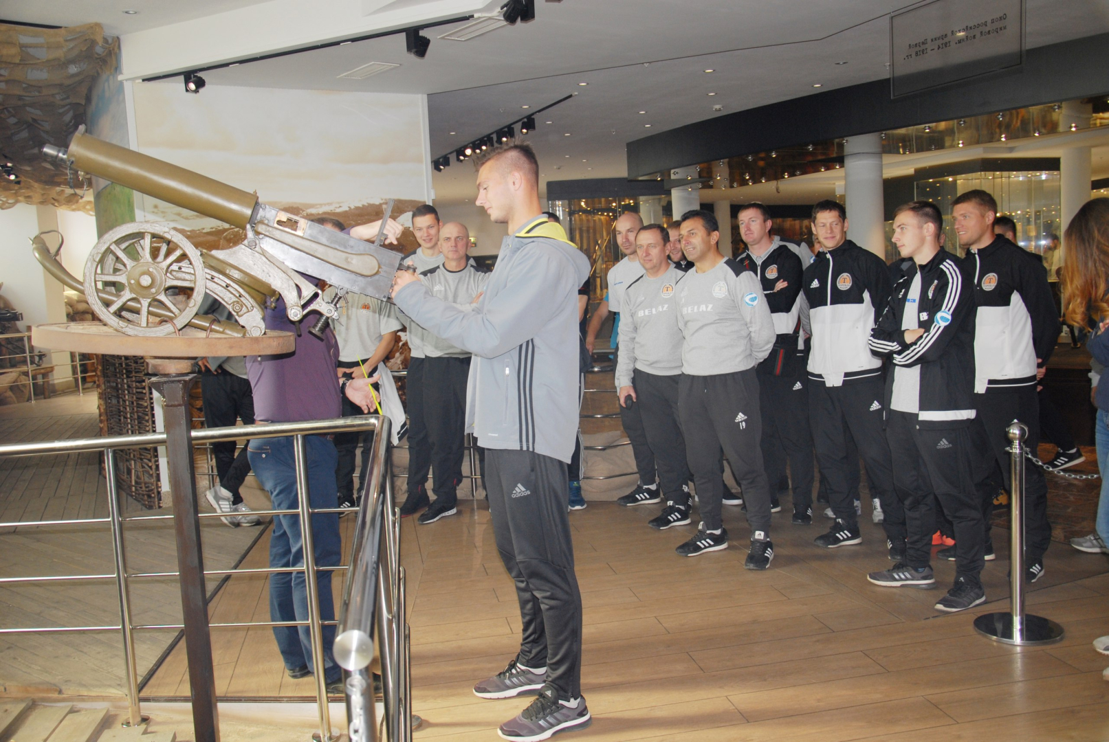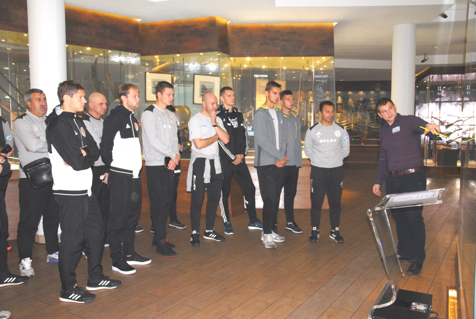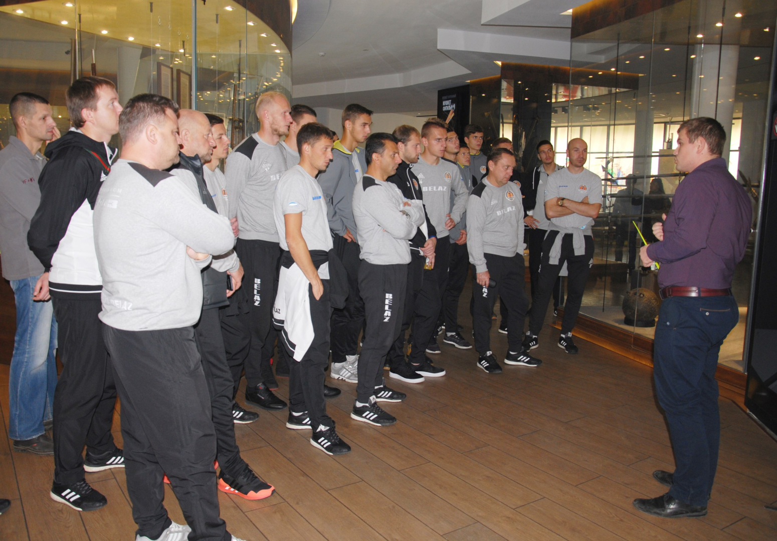 Накануне контрольного матча с тульским «Арсеналом» игроки и тренерский штаб футбольного клуба «Торпедо-БелАЗ» (г. Жодино), одного из лидеров чемпионата Белоруссии, посетили Тульский музей оружия. Спортсменов удивили уникальная коллекция холодного и стрелкового оружия и ультрасовременная мультимедийная интерактивная экспозиция нашего музея.