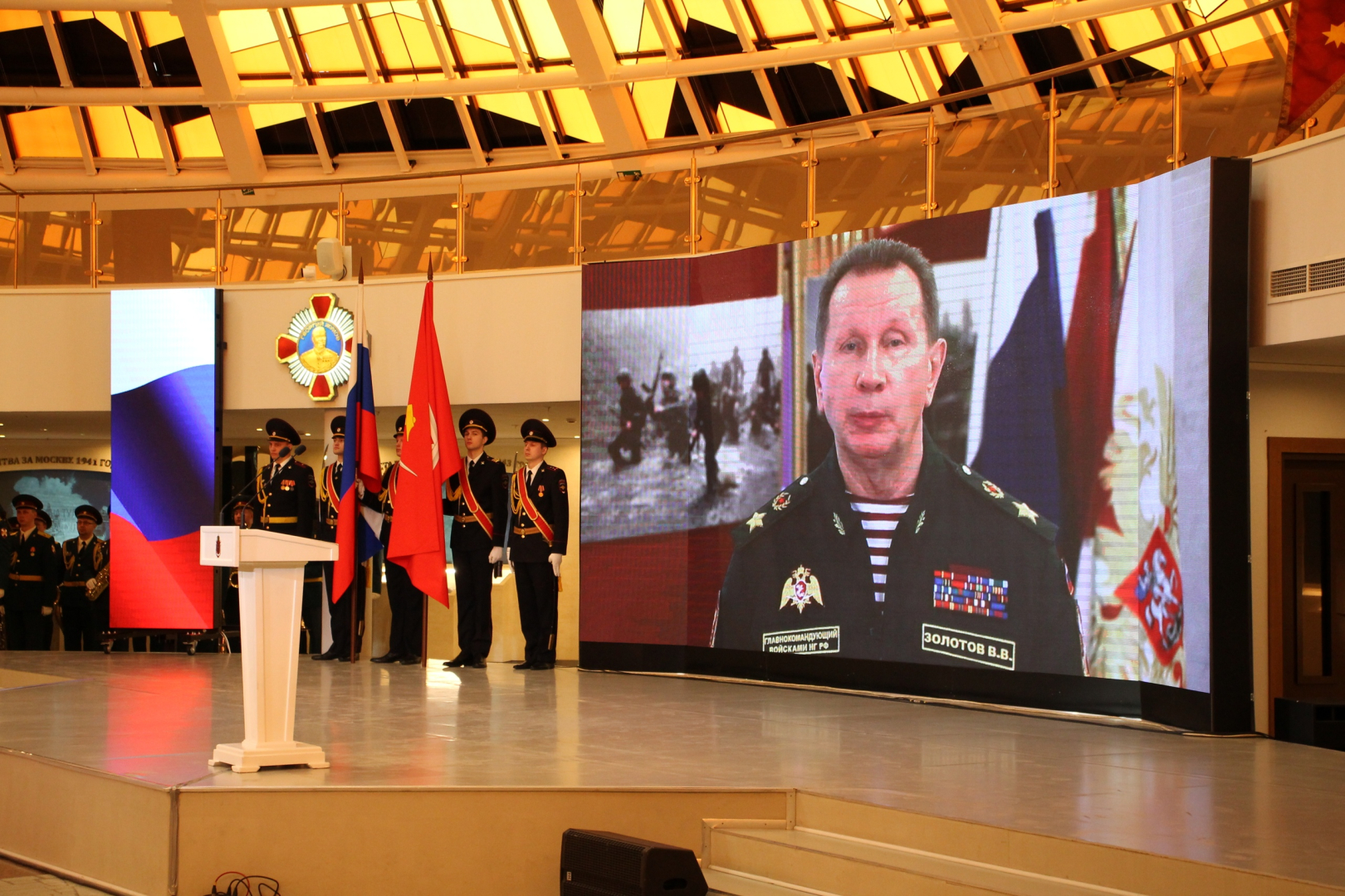 Собрание было открыто видеообращением Президента России В.В. Путина, который поздравил сотрудников Росгвардии с профессиональным праздником и поблагодарил за службу.