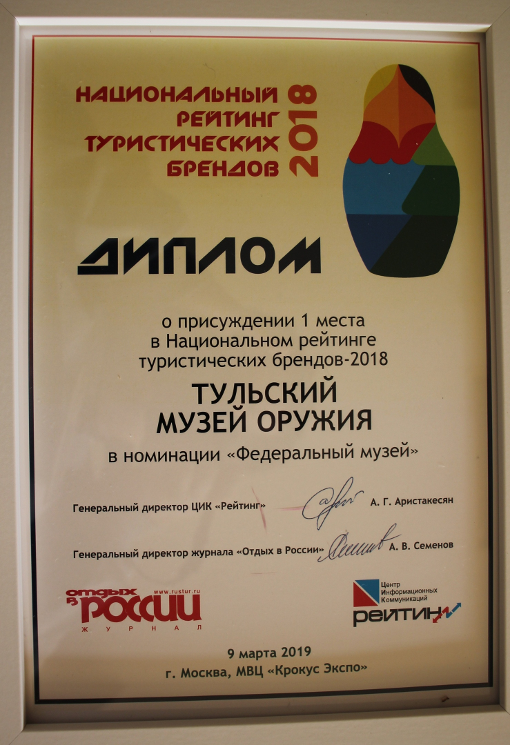 Тульский музей оружия занял 1 место в Национальном рейтинге туристических брендов в номинации «Федеральный музей».