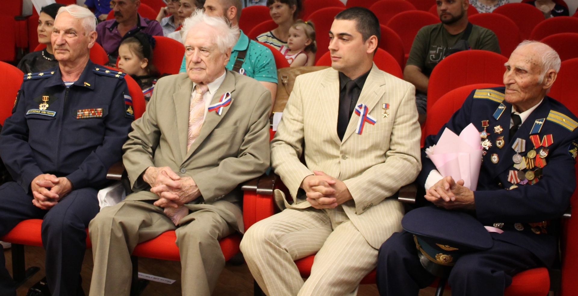 Участники мероприятия сердечно приветствовали ветерана Великой Отечественной войны Денисова Василия Алексеевича, Героя России Бойкова Александра Васильевича, Героя Социалистического Труда Щербино Ивана Васильевича.