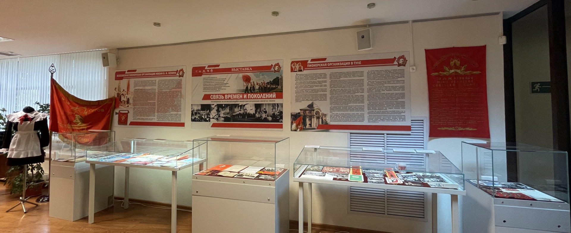 Выставочный проект «Связь времен и поколений» отражает особую роль и огромное значение пионерского движения в общественной жизни нашей страны, в целом, и в Тульской области, в частности. Мало кто знает, что в период героической обороны Тулы в городе была создана фронтовая бригада «Красный галстук», которая занималась оперативно-разведывательной работой. Бригада состояла только из пионеров и действовала как на фронте, так и в оккупированных фашистами городах и поселениях области. Пионеры спасали раненых бойцов на поле боя, работали в госпиталях, стояли у станков на производстве, выполняя норму взрослых.