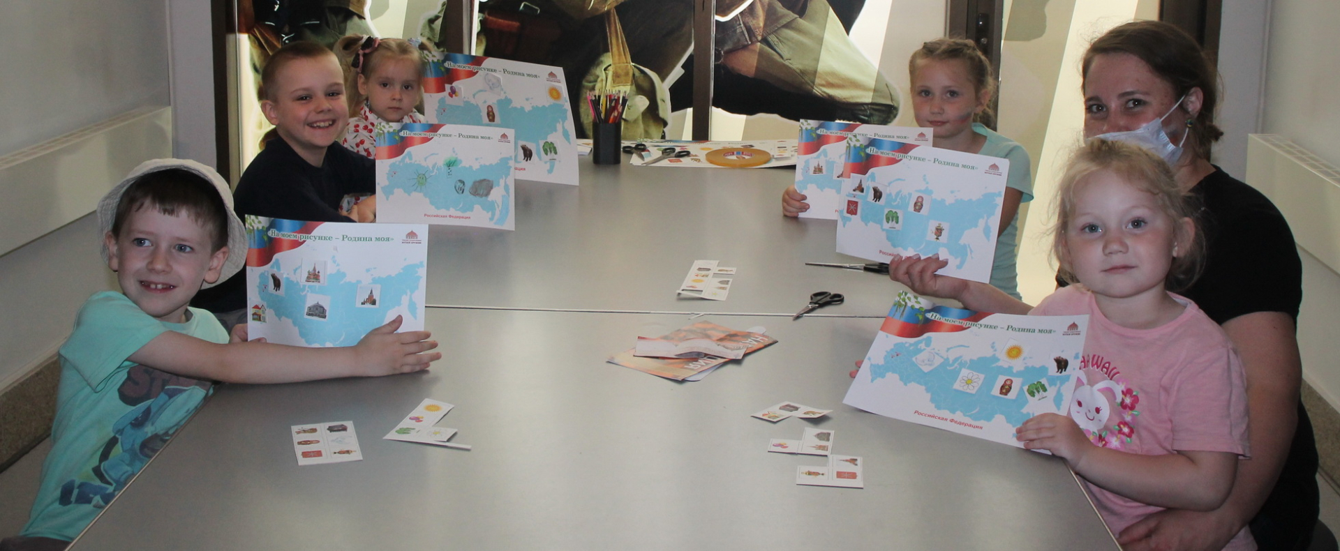 Предлагаем вашему вниманию фотоколлаж неповторимых образов, созданных юных участниками мастер-класса «На моем рисунке – Родина моя», а также фотографии с игровой площадки «Полевая почта» и патриотической акции «Лента-триколор».