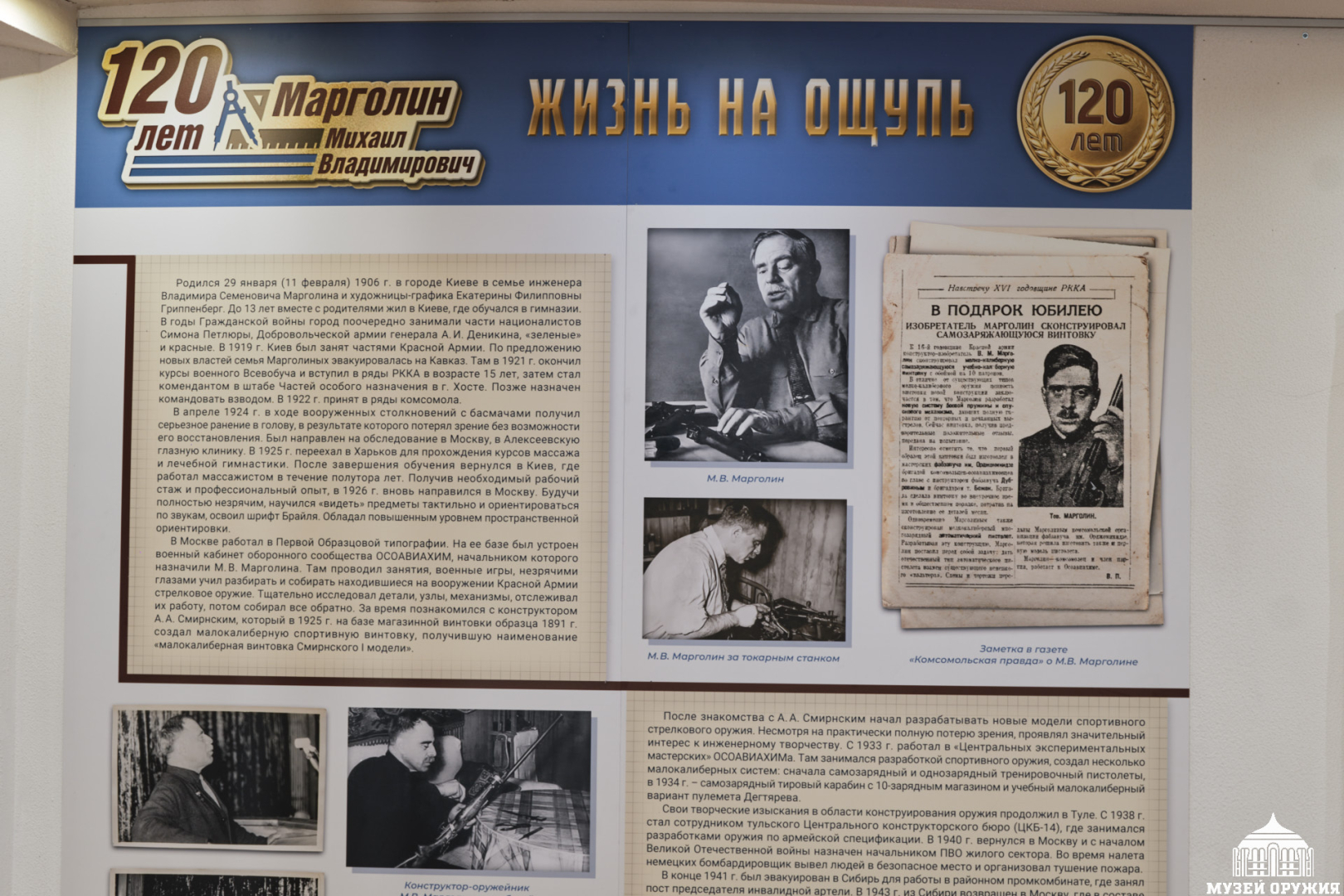 В Тульском государственном музее оружия открылась выставка «Видеть лучше многих», посвященная 120-летию выдающегося отечественного конструктора Михаила Владимировича Марголина.