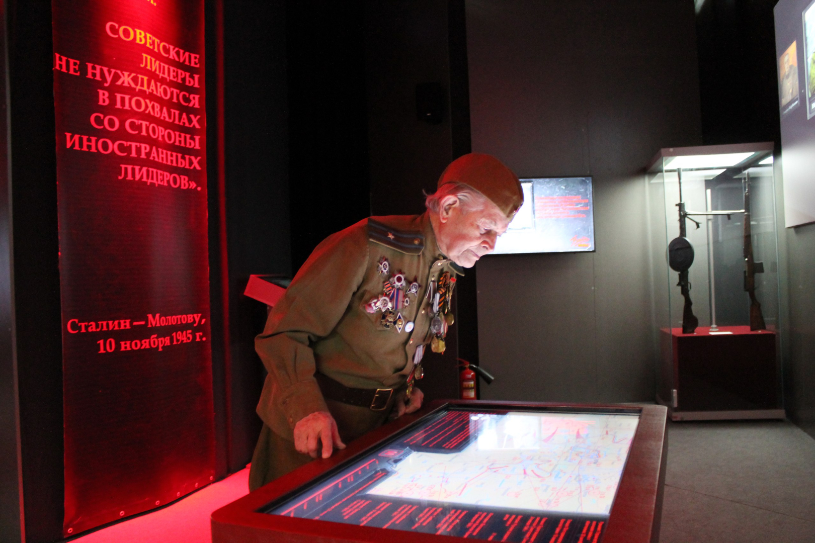 Уникальная выставка Российского военно-исторического общества «Война и мифы» продолжает вызывать интерес у посетителей музея, и особенно у молодежной аудитории. Кадры военной хроники, грозное оружие победителей, современные мультимедийные средства, позволяющие услышать и увидеть реалии боевых действий – приближают суровый 1941-й год. Но никакие экспонаты не могут заменить воспоминаний очевидцев и участников тех событий. Шалашников Евгений Тимофеевич – фронтовик, принимал участие в Курско-Орловской битве, освобождении Белоруссии, Польши и штурме Берлина, рассказал ребятам о сражениях, ранениях, о крепкой фронтовой дружбе и взаимовыручке. Вечная память тем, кто не вернулся с фронтов Великой Отечественной, и благодарность ныне живущим ветеранам, неустанно передающим молодежи свой патриотизм и любовь к Родине.