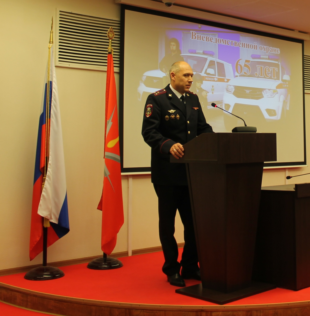 Сегодня в музее оружия состоялось торжественное собрание, посвященное 65-ой годовщине образования вневедомственной охраны, которая в настоящее время относится к войскам Национальной гвардии Российской Федерации. С теплыми поздравлениями к сотрудникам, отмечая их доблесть, честь, отвагу и высокий профессионализм, обратились начальник Управления министерства внутренних дел РФ по Тульской области С.А. Галкин, заместитель начальника Управления Федеральной службы войск национальной гвардии РФ по Тульской области С.В. Осипченко, начальник управления вневедомственной охраны войск национальной гвардии РФ по Тульской области И.Ю.Ланцов и председатель комитета по мобилизационной подготовке и связям с правоохранительными органами правительства Тульской области И.А. Бедринец. За образцовое выполнение служебных обязанностей, безупречную многолетнюю службу, высокие результаты в обеспечении правопорядка и региональной безопасности сотрудники вневедомственной охраны были награждены почетными грамотами федерального и регионального уровней, а также медалями «Честь и мужество». Лейтмотивом торжества и праздничного концерта звучали слова: «Гордимся тем, что выпало служить нам в Росгвардии родимой нам страны!».