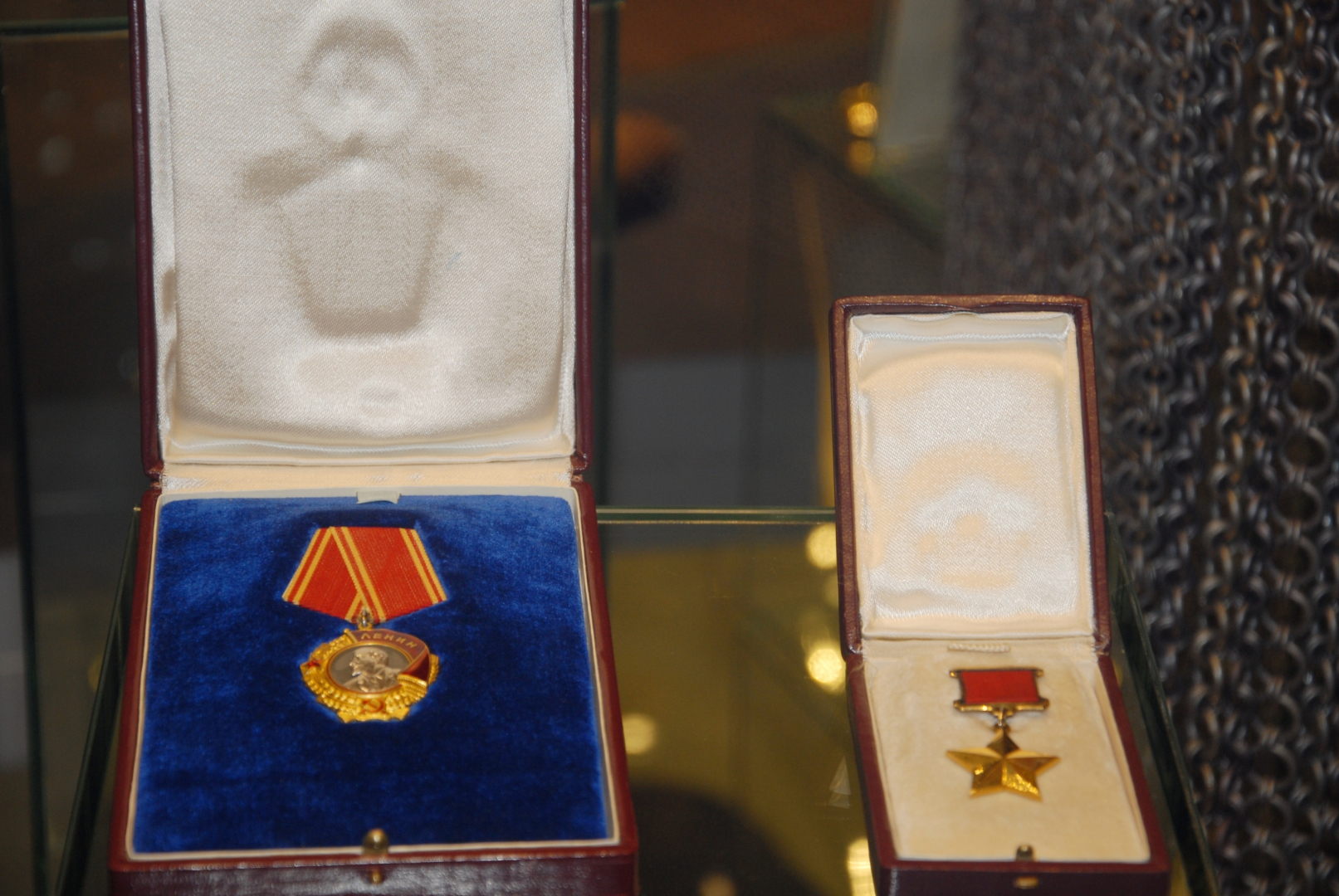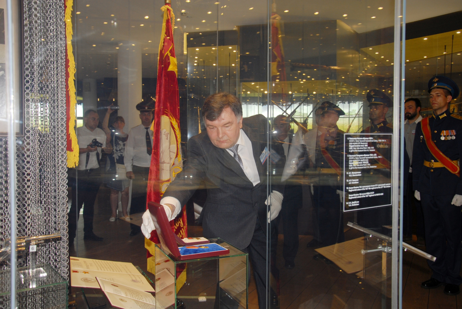 Глава города-героя Тулы Ю.И. Цкипури и глава администрации города Тулы Е.В. Авилов торжественно передали директору музея Н.И. Калугиной знамя города-героя Тулы, медаль «Золотая Звезда», орден Ленина и ценные документы.