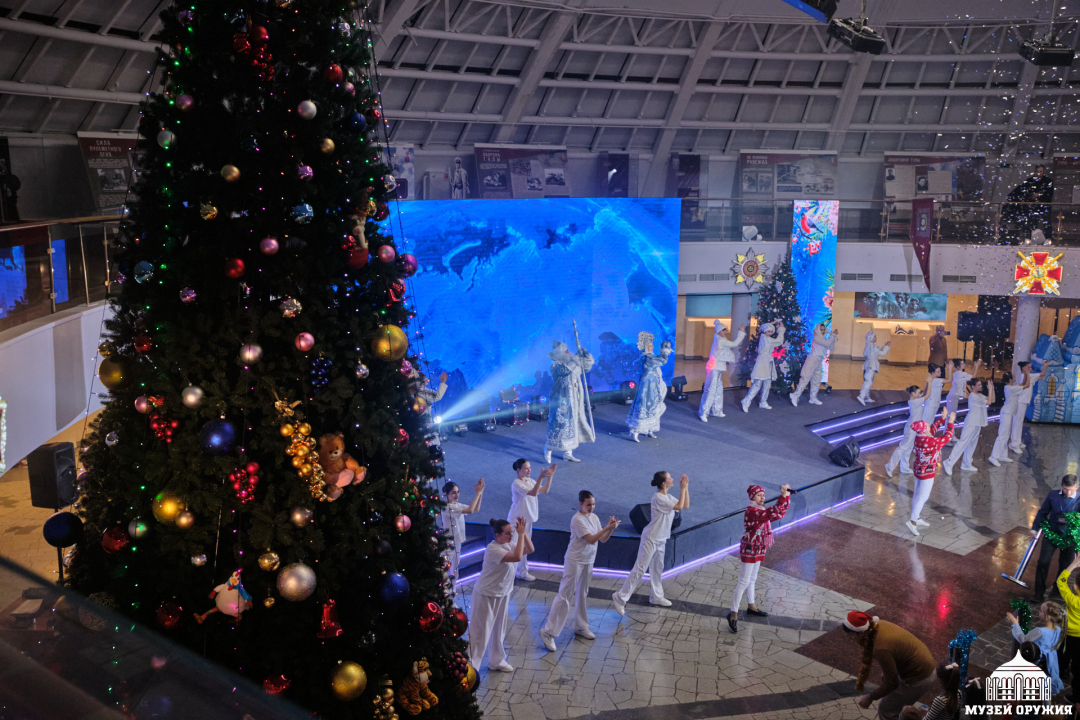 В Зале Славы российского оружия у десятиметровой красавицы-елки происходит сказочное интерактивное действо, наполненное невероятными поворотами событий.
