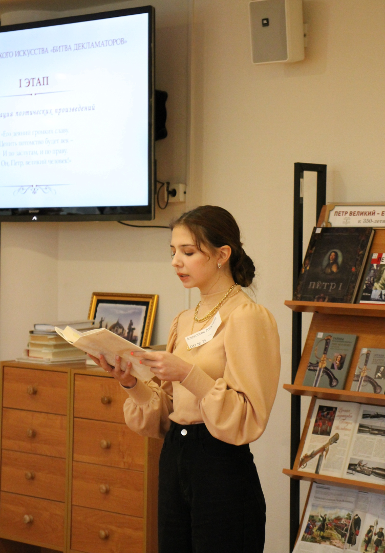 20 апреля в музее оружия состоялся конкурс ораторского искусства «Битва декламаторов», посвящённый 350-летию со дня рождения Петра I.