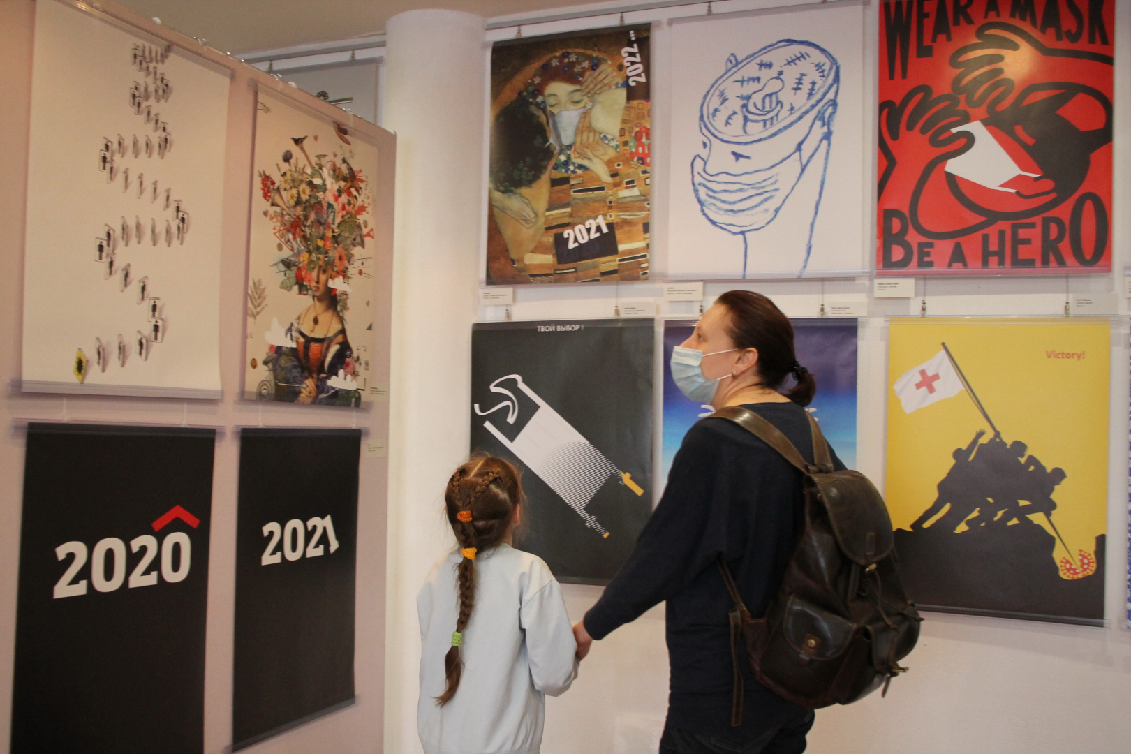 На выставке представлено 140 лучших плакатов участников конкурса на актуальные темы современности.