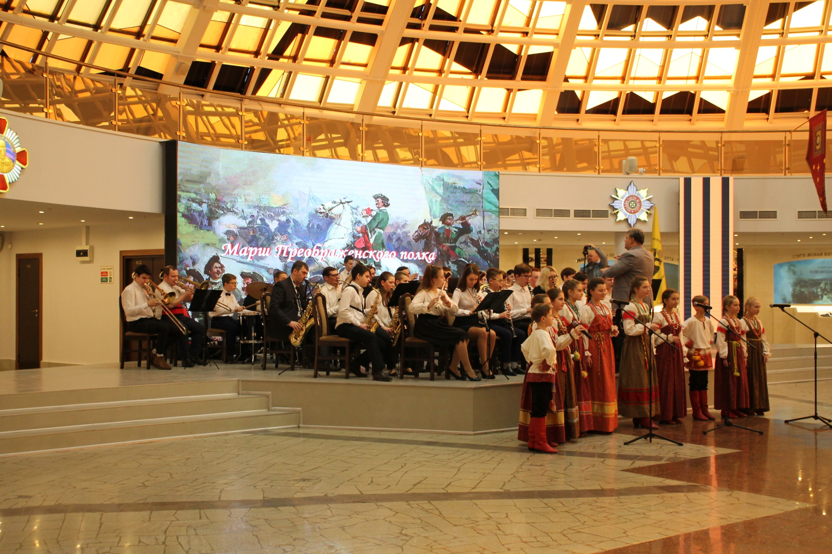С концертной программой «О доблести и славе. Знаменитые русские марши», посвященной Дню защитника Отечества, выступил сводный детский духовой оркестр г. Тулы «Arsenal Brass» под руководством Р.А. Хотина.
