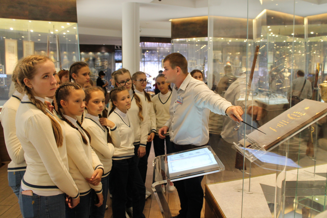 В гостях у музея оружия воспитанницы московского кадетского корпуса «Пансион воспитанниц Министерства обороны Российской Федерации».