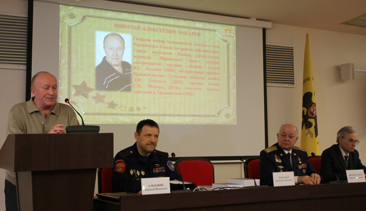 Сегодня в музее оружия состоялась презентация книги «Они воевали за Речкой» Николая Алексеевича Макарова, гвардии майора медицинской службы, члена Российского Союза ветеранов Афганистана, Союза писателей России, редколлегии журнала «Приокские зори», лауреата литературной премии «Левша» имени Н.С. Лескова, литературной премии Правительства Тульской области имени Л.Н. Толстого, премии имени С.И. Мосина, автора многочисленных изданий о туляках, оставивших яркий след в истории нашего Отечества.
