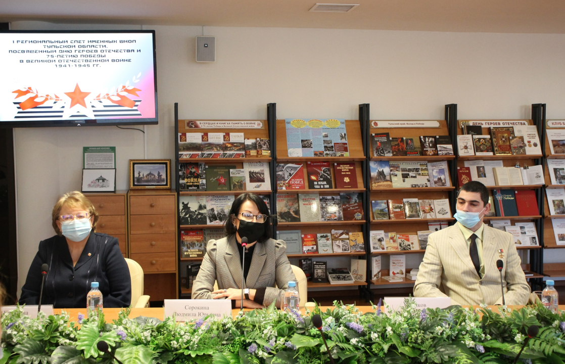 9 декабря, в День Героев Отечества, в рамках I регионального Слета именных школ состоялась встреча Героя Российской Федерации А.В. Бойкова, директора Тульского государственного музея оружия Н.И. Калугиной, директора департамента образования министерства образования Тульской области Л.Ю. Сорокиной, директора «Центра дополнительного образования детей» Ю.В. Грошева с обучающимися именных школ Тульской области – участниками областного фестиваля мультимедийных проектов «Герои и подвиги».