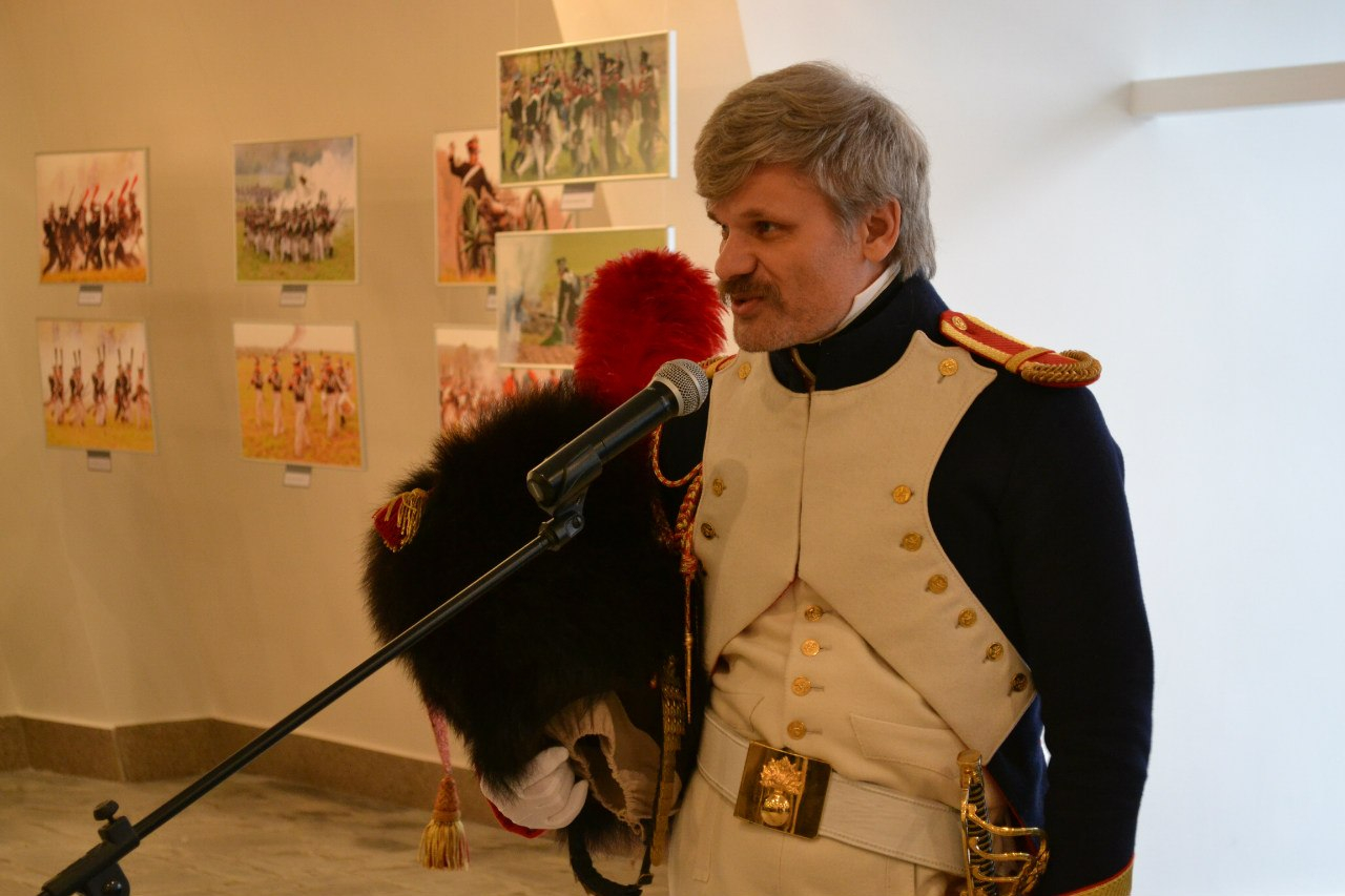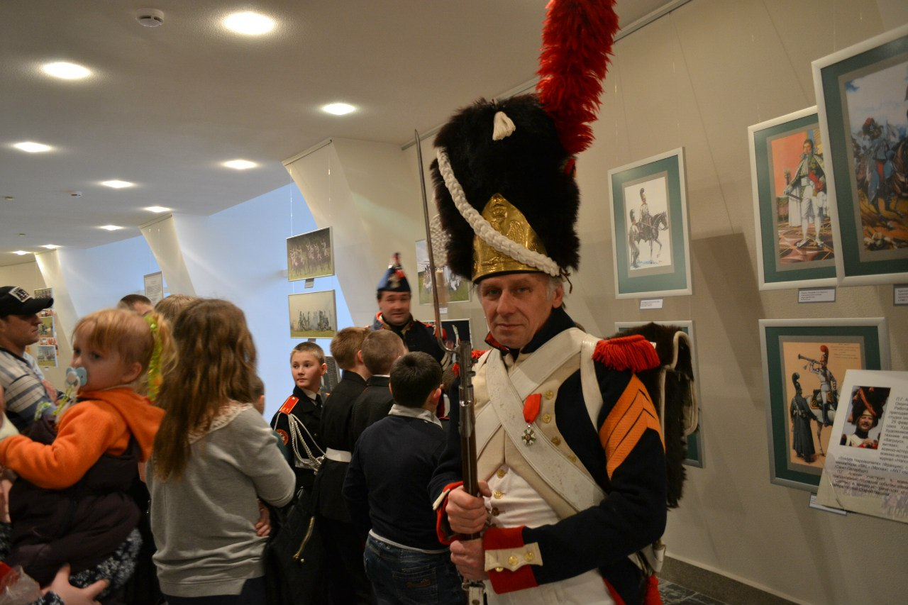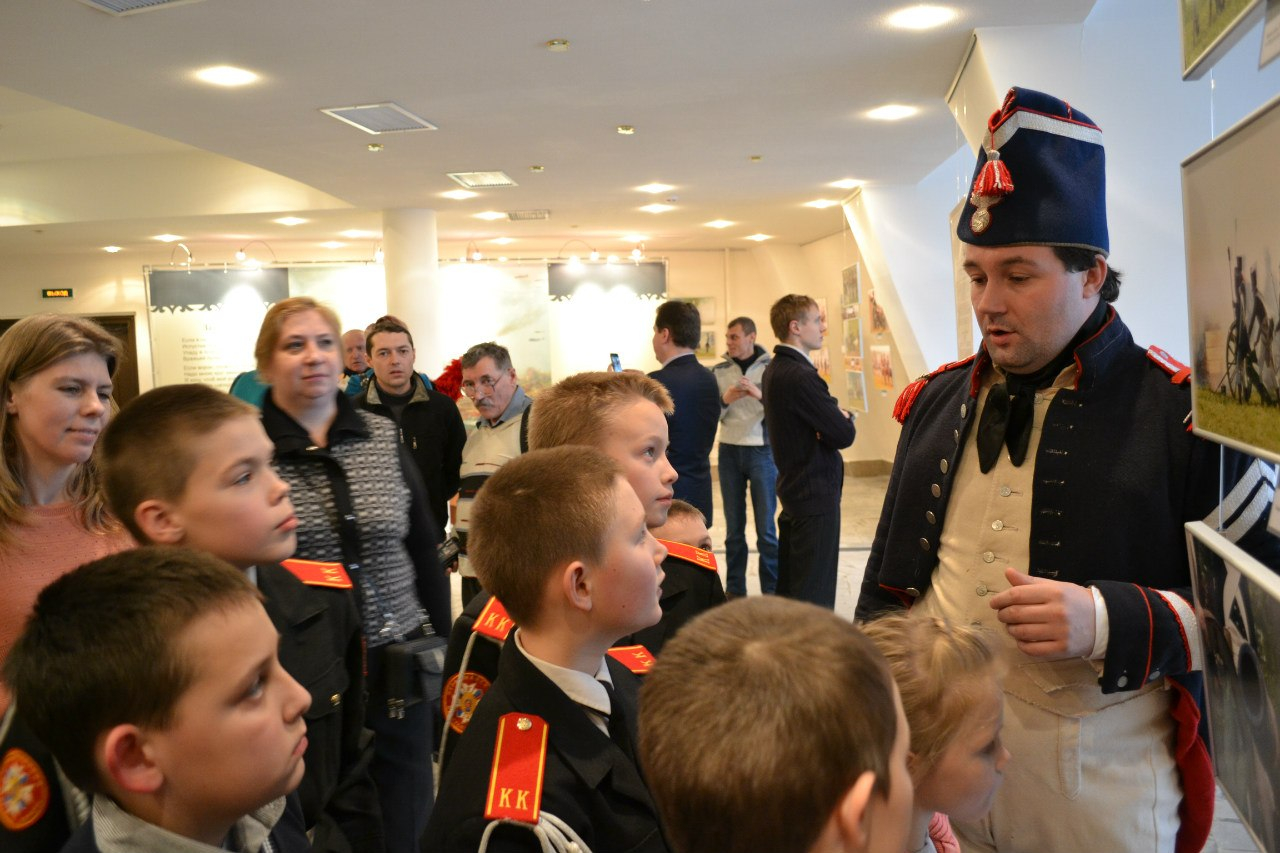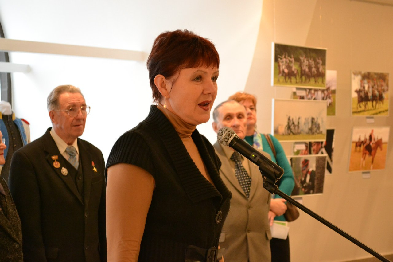 Анна Борисовна Орехова, учредитель ООО «Группа ДОВЕРИЕ», поблагодарила музей за предоставленную возможность в организации выставки и вручила директору музея Надежде Ивановне Калугиной «Памятную медаль в честь 140-летия». Руководитель клуба реконструкции «Конные гренадеры» Евгений Леонидович Суздальцев обратился к маленьким гостям выставки - мальчишкам и девчонкам. Ведь им представился уникальный случай изучать Отечественную историю не только с помощью учебников, но общаясь с реконструкторами и изучая фотографии с полей сражений.