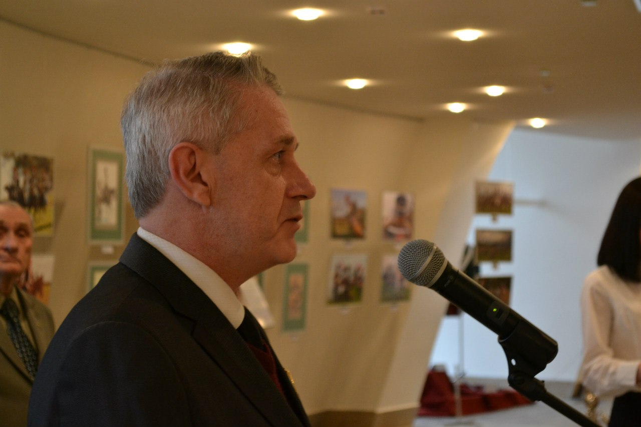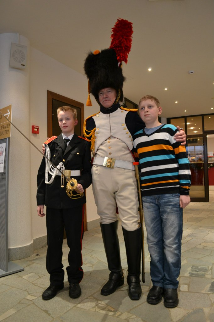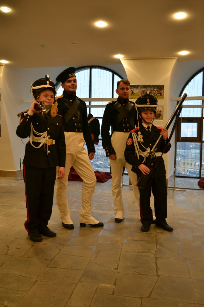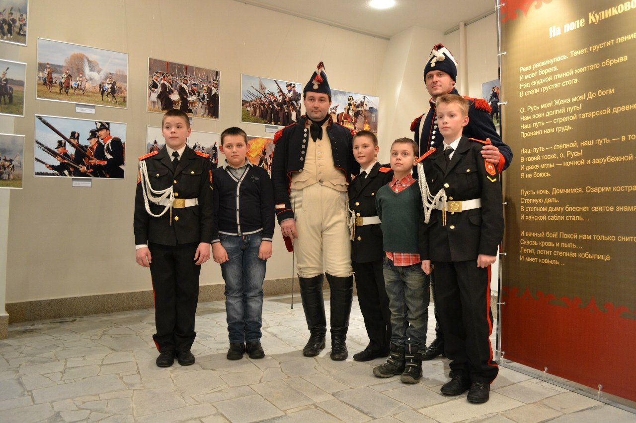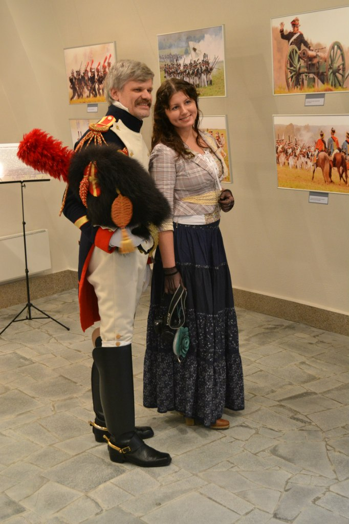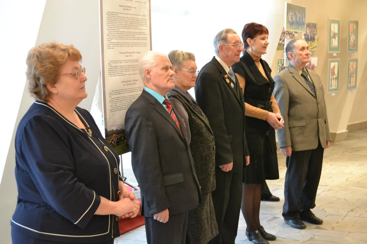 Анна Борисовна Орехова, учредитель ООО «Группа ДОВЕРИЕ», поблагодарила музей за предоставленную возможность в организации выставки и вручила директору музея Надежде Ивановне Калугиной «Памятную медаль в честь 140-летия». Руководитель клуба реконструкции «Конные гренадеры» Евгений Леонидович Суздальцев обратился к маленьким гостям выставки - мальчишкам и девчонкам. Ведь им представился уникальный случай изучать Отечественную историю не только с помощью учебников, но общаясь с реконструкторами и изучая фотографии с полей сражений.