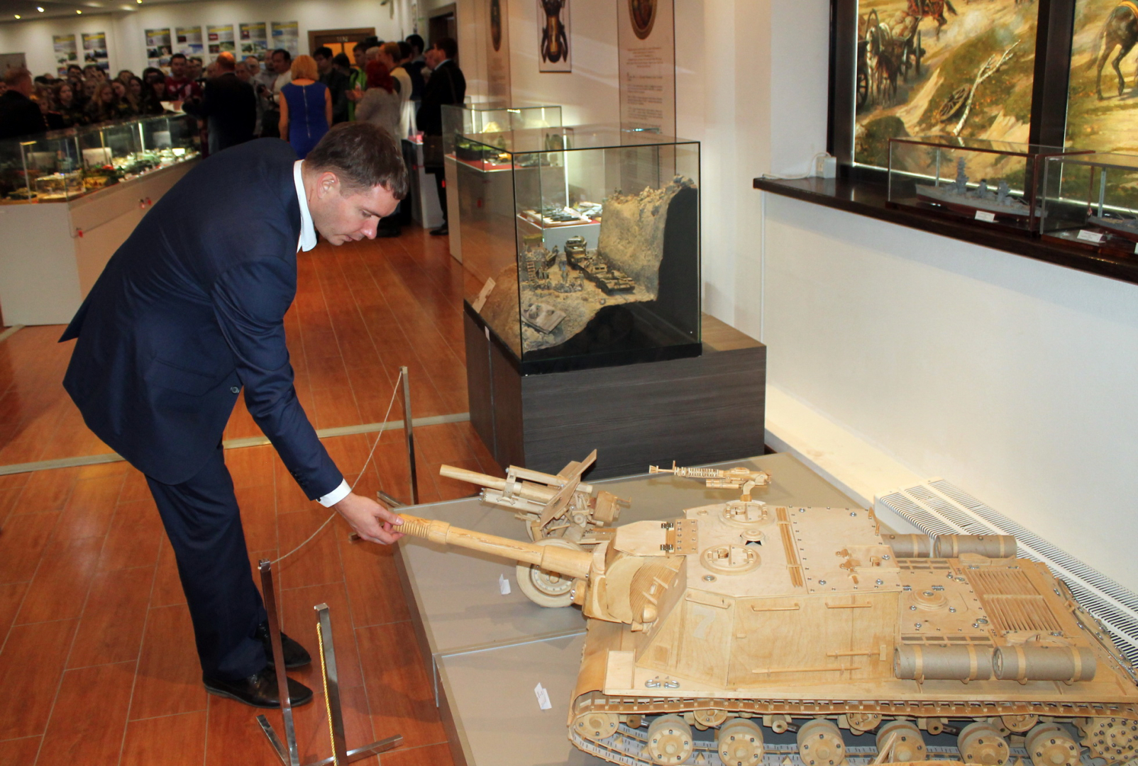 Гостей выставки приветствовал заместитель министра молодежной политики Тульской области В.А. Яицкий и обратил особое внимание на творческие работы моделистов, посвященные Великой Отечественной войне и способствующие патриотическому воспитанию молодежи.