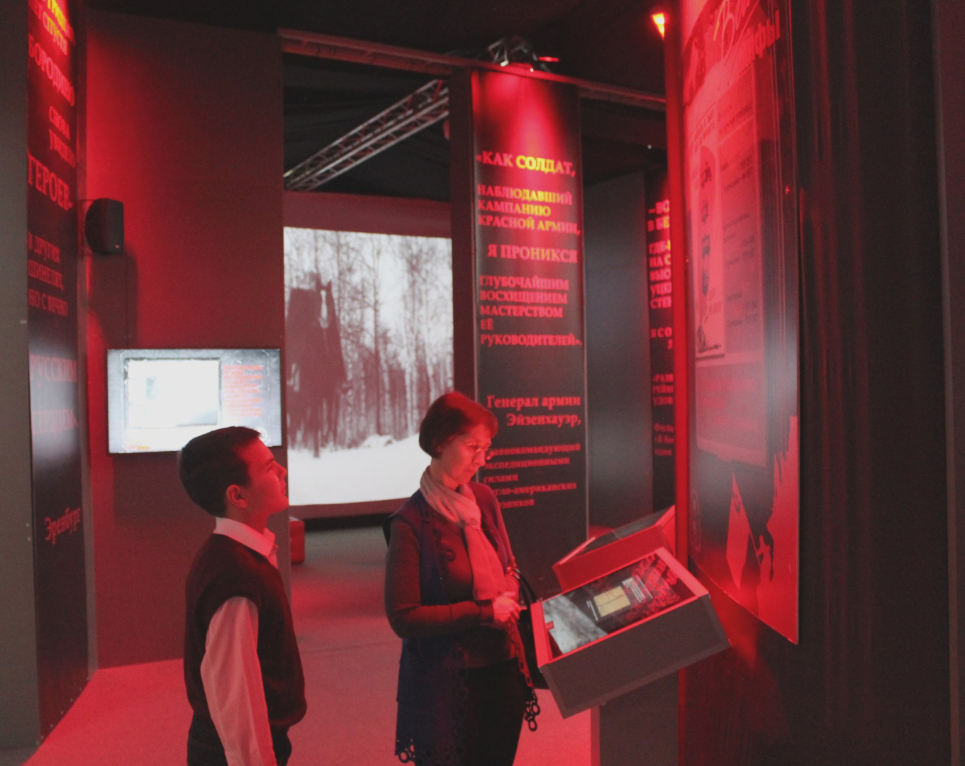Роман: Выставка необычна тем, что большая часть информации воспринимается глазами, а не на слух, через интерактивные панно, экраны. Такой современный подход, мне кажется, будет понятен даже маленьким детям, скажем, учащимся начальной школы. Ты становишься как будто участником событий.