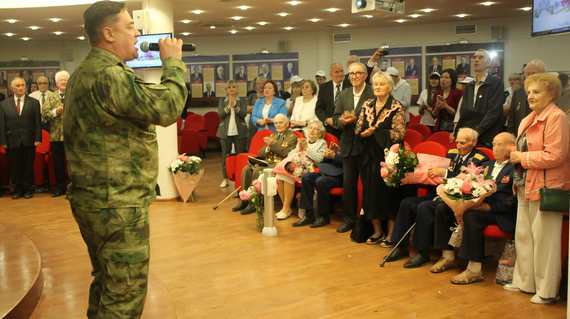 В едином порыве зал стоя приветствовал главных гостей форума – ветеранов Великой Отечественной войны: Василия Марковича Мирошниченко - участника Сталинградской битвы, Корсунь-Шевченковской и Одесской операций, завершившего свой боевой путь в Бранденбурге под Берлином, Почетного гражданина города-героя Тулы; Николая Ивановича Кульпова - военного лётчика 303-й авиационной истребительной дивизии, в составе которой воевал прославленный полк «Нормандия-Неман», принимавшего участие в штурме Кёнигсберга, Почетного гражданина Тульской области; Василия Алексеевича Денисова - воздушного разведчика, авиационного техника и Владимира Петровича Лаврова, зенитчика, сопровождавшего танковые эшелоны на Курскую дугу.